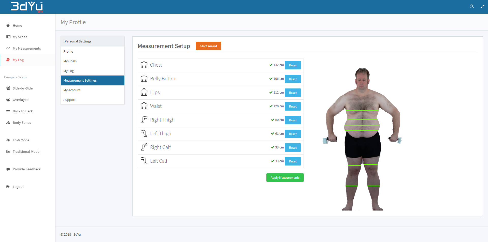 We then take thousands of minute slices through your model and use our proprietary algorithms, to precisely measure key body areas such as your arms, waist and legs.